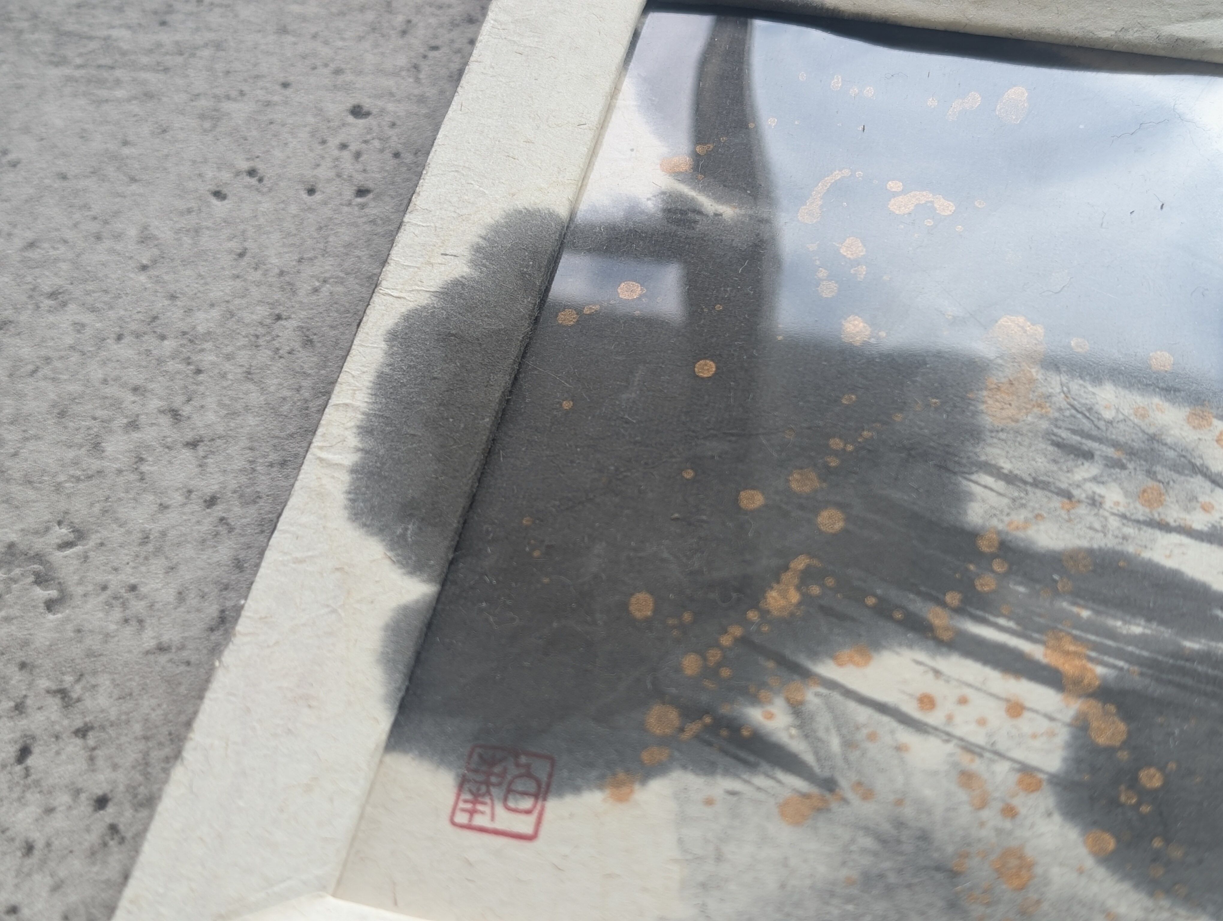 黒黒とした墨象もかっこよくて好きですが、こちらは淡墨と更に薄い墨を組み合わせたもの。更にゴールドの墨で華やかさをプラスしています。