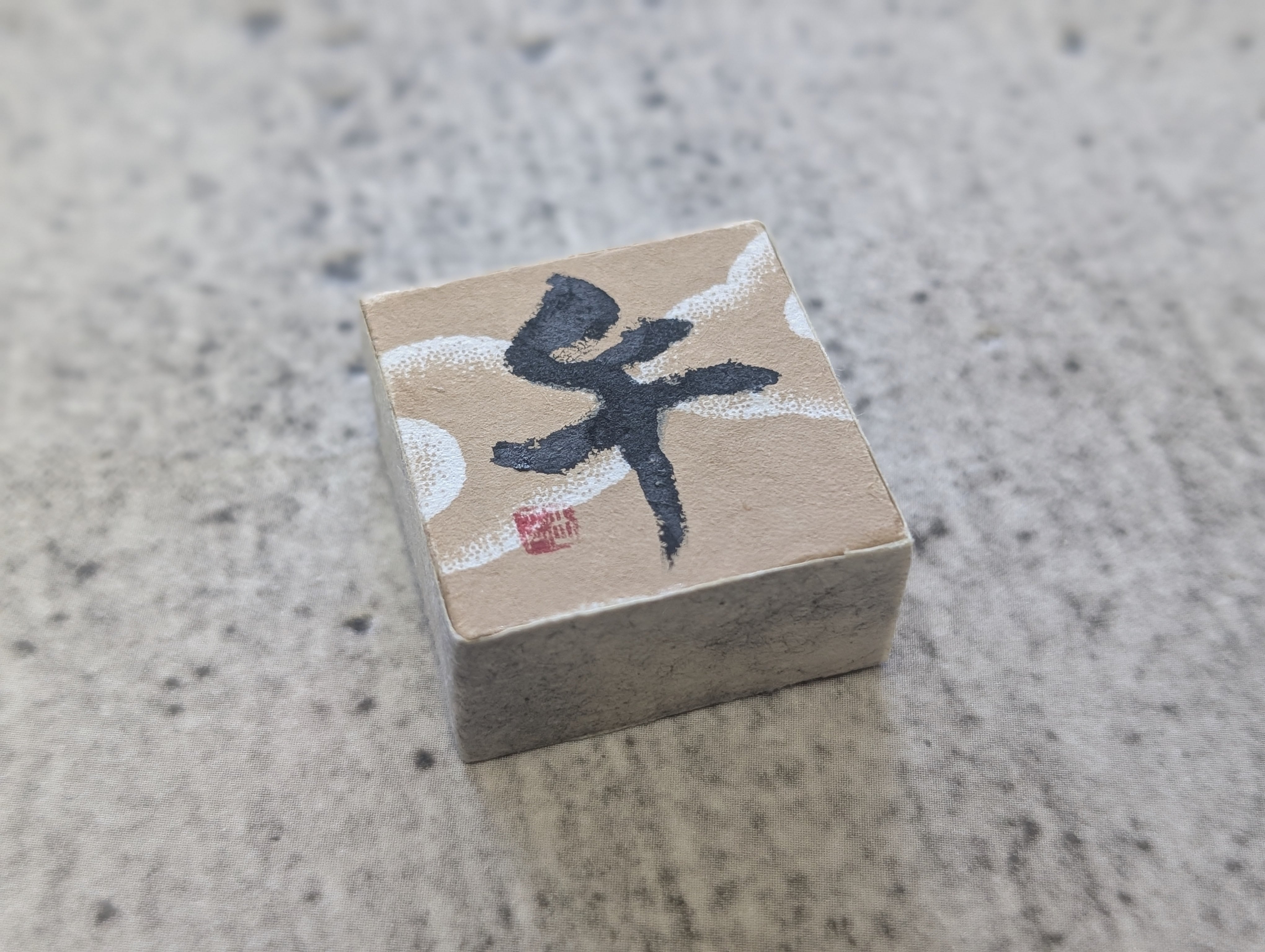 書家として日々膨大な数の紙に練習を致します。商品はこの練習をした紙で作ったオリジナルの袋を使い簡易包装でお送りいたします。エコに貢献するため、その点も弊店のオリジナリティーとご理解頂ければ幸いです。
