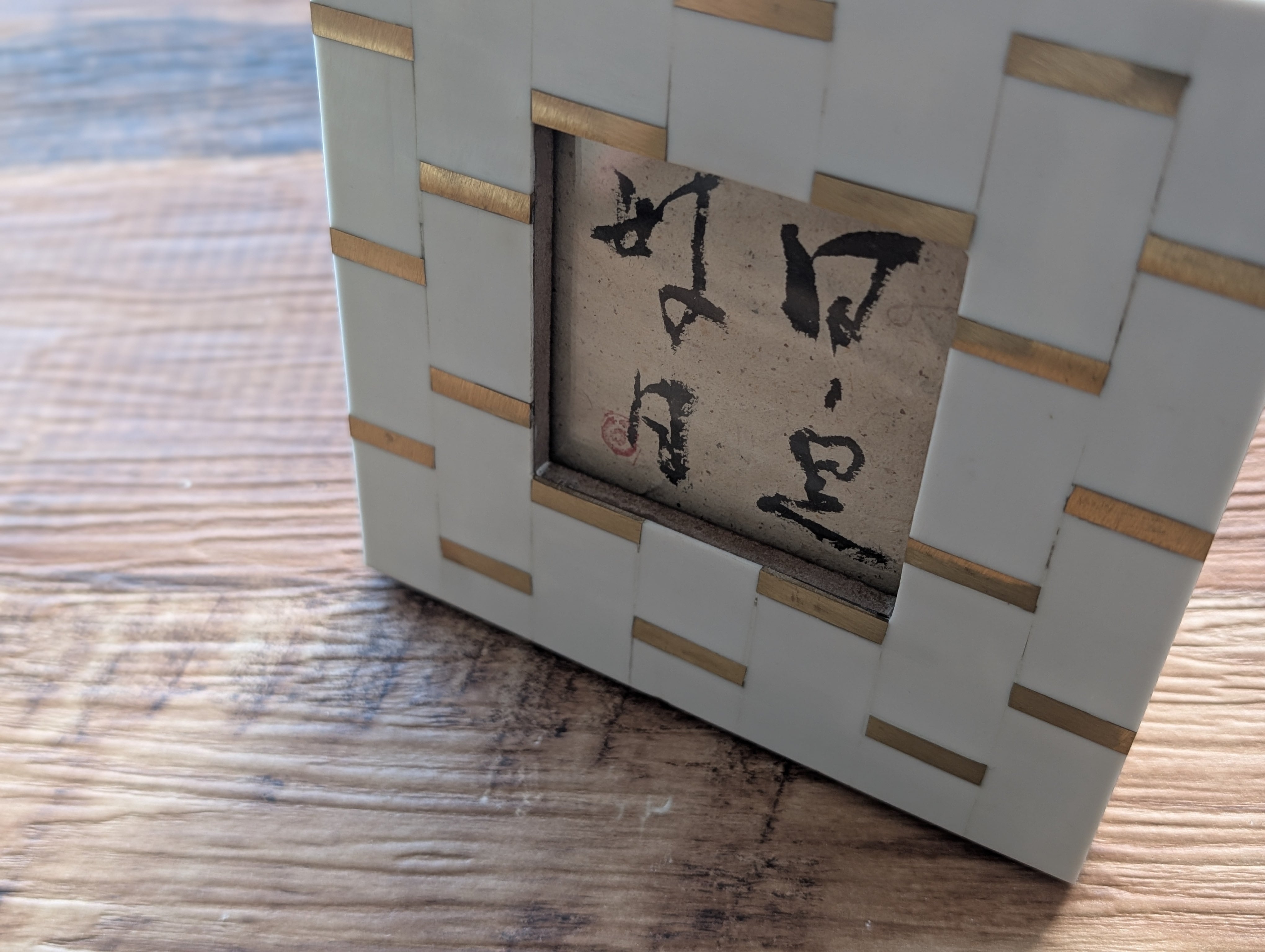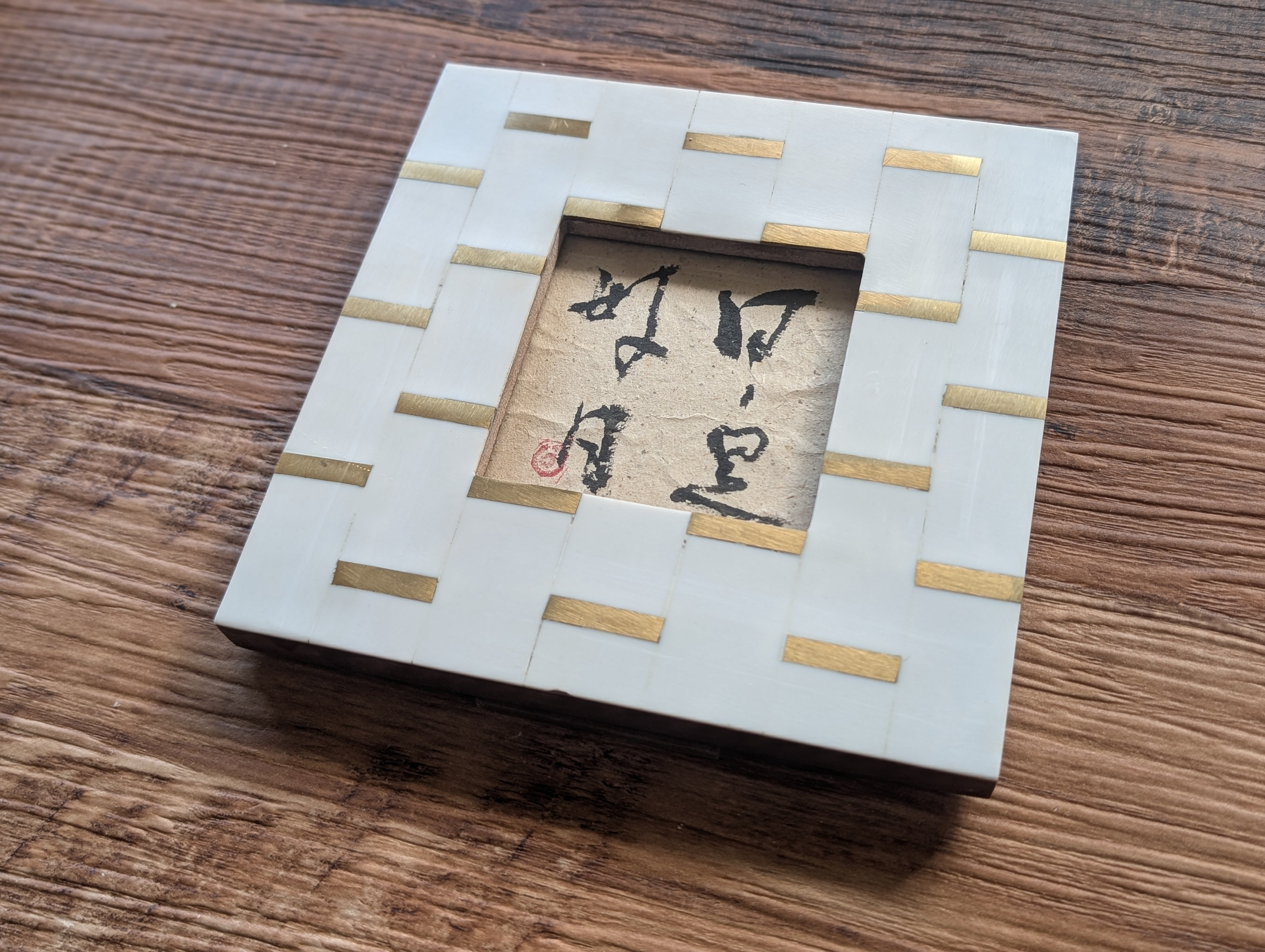 お洒落なフレームに合わせて、昔バリで購入した紙に書いてみました。
