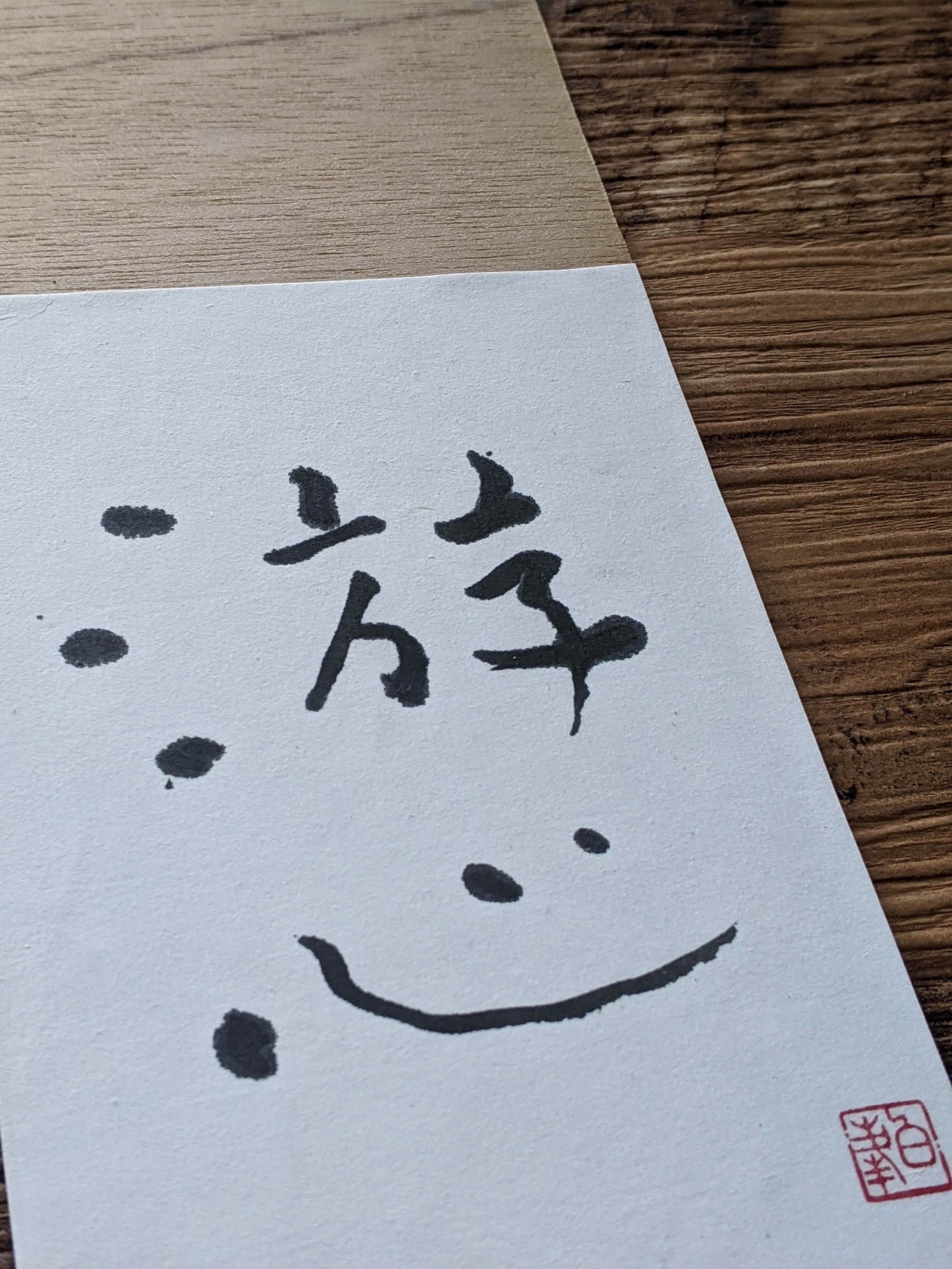 書家として日々膨大な数の紙に練習を致します。商品はこの練習をした紙で作ったオリジナルの袋を使い簡易包装でお送りいたします。エコに貢献するため、その点も弊店のオリジナリティーとご理解頂ければ幸いです。