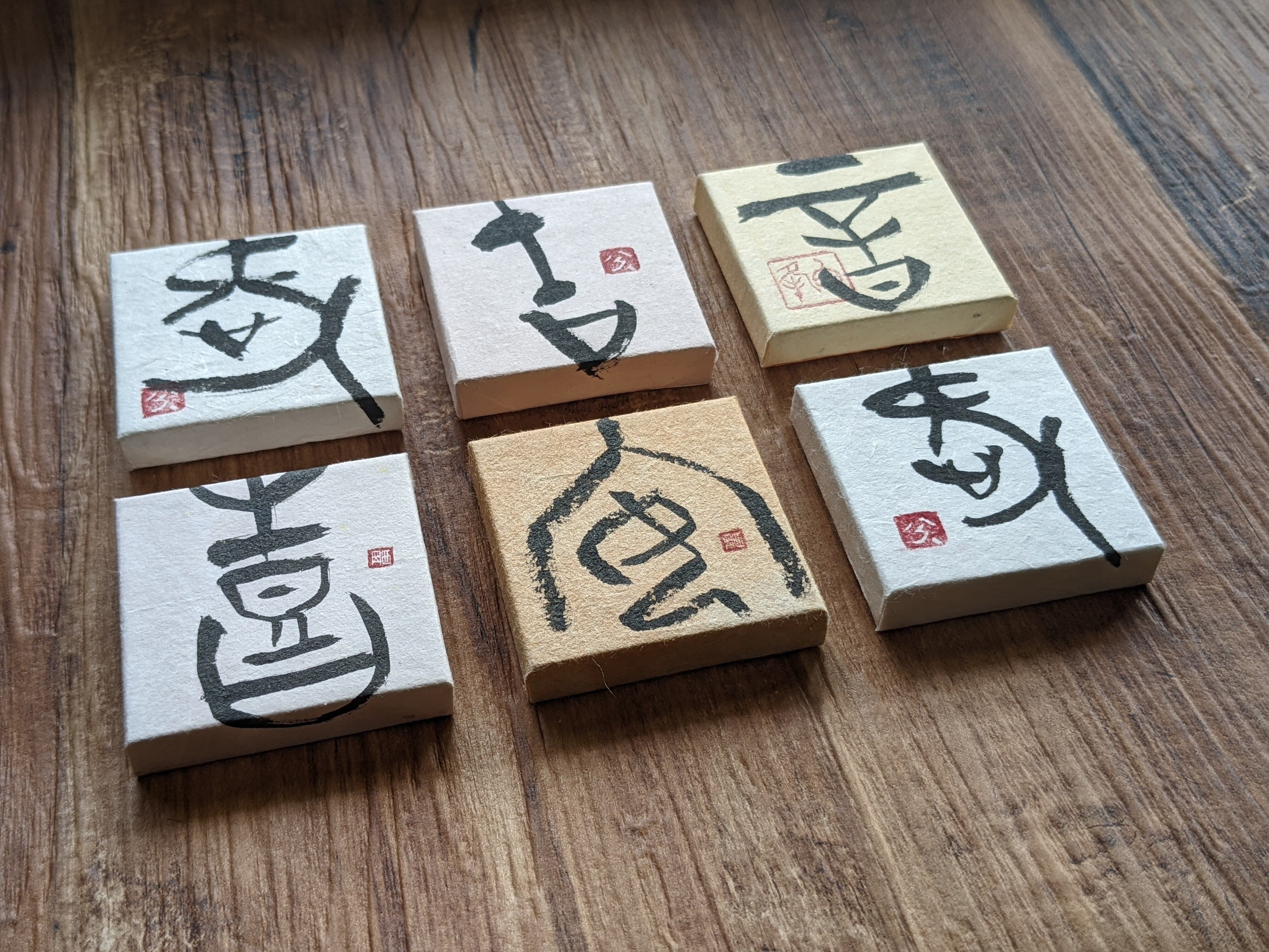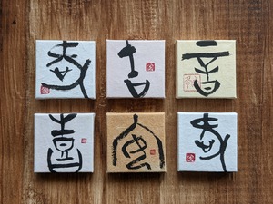 書家として日々膨大な数の紙に練習を致します。商品はこの練習をした紙で作ったオリジナルの袋を使い簡易包装でお送りいたします。エコに貢献するため、その点も弊店のオリジナリティーとご理解頂ければ幸いです。