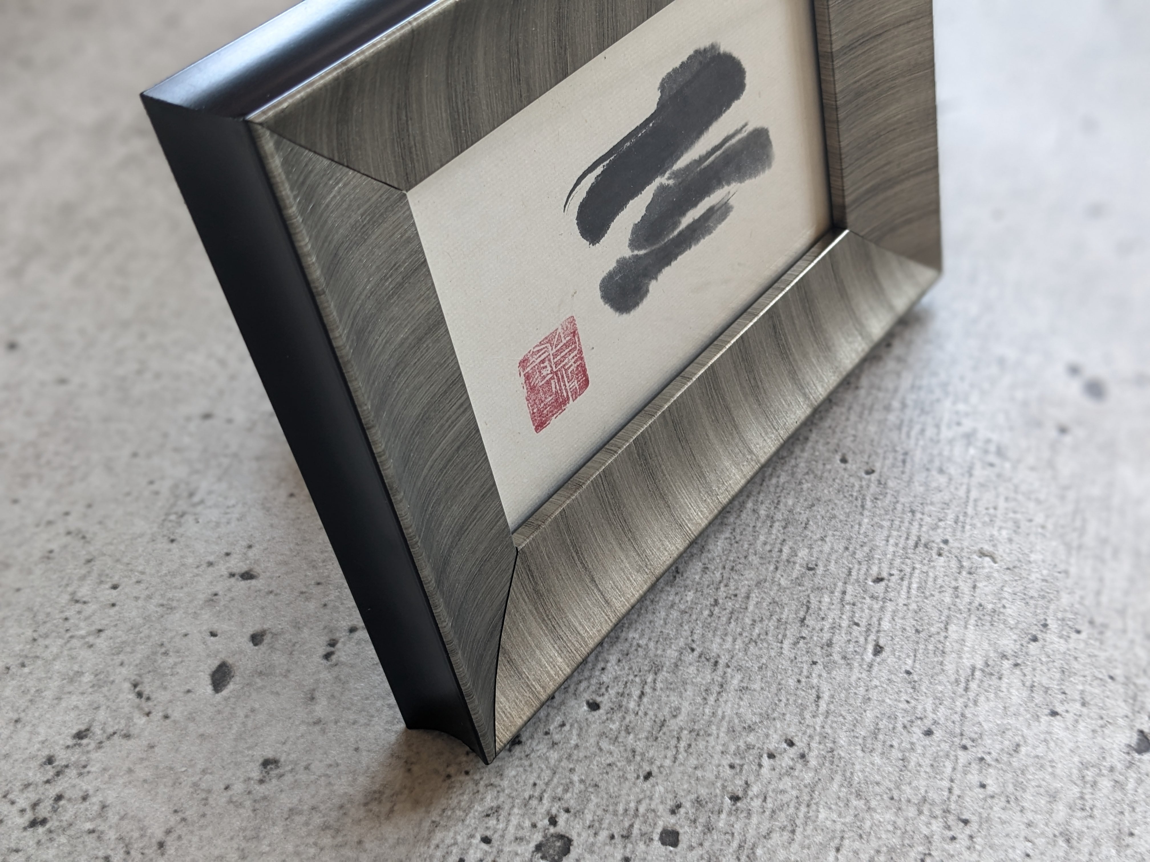 三本線という究極にシンプルな文字ですが、その分、墨の色はもちろん線ひとつひとつの違いや空間の広がりを楽しんでいただける作品に仕上がっていると思います!